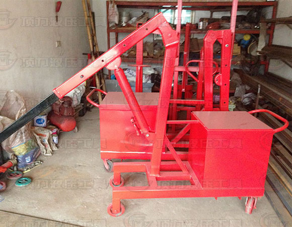 4.起吊重物前應將卸荷閥擰緊,并根據重物的重量將小臂調定到相應的工作位置,壓動操縱桿,重物徐徐吊起,直到所需高度,重物下降時,將泵體放油螺釘按逆時針方向微微放松,油缸卸荷,活塞桿即逐漸下降。下降速度過快將產生危險。起吊時吊臂下方嚴禁站人,避免發生事故。