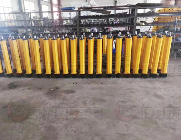 YT4-8A 液壓移溜器實用新型涉及到礦山溜槽移動裝置,是一種液壓推溜器。其結構為缸體外壁的前部和后部同向分別固定裝有前液壓閥和后液壓閥,在兩閥之間的缸體外壁相對的兩側固定裝有定位軸。