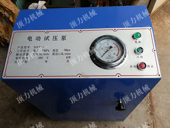 3、按啟動按鈕,電機工作,當壓力表指針超過1.2MPa時,電動試壓泵低壓泵自動卸荷,指針達到額定壓力時,高壓泵亦卸荷,壓力不會上去。